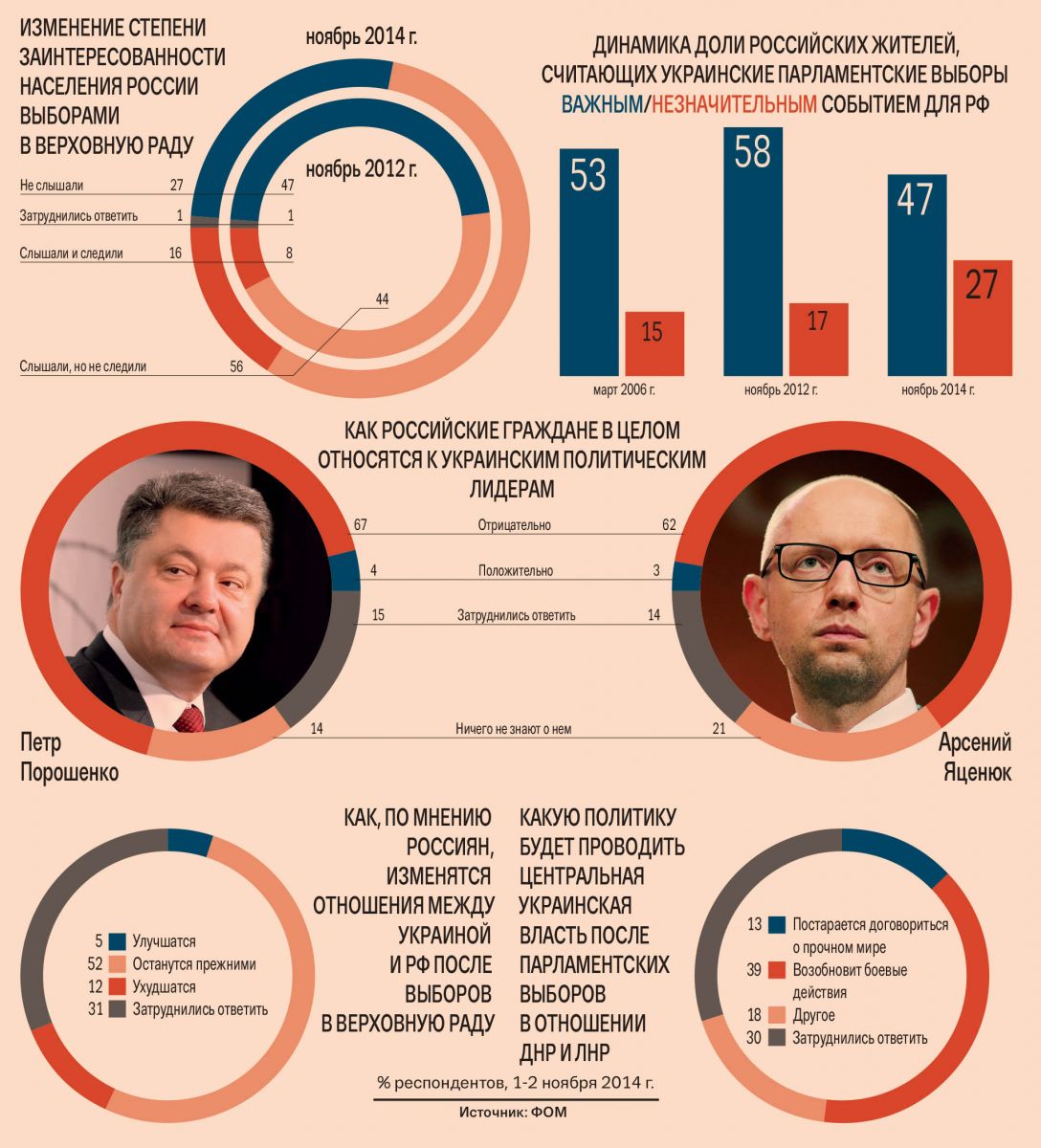 Цель исследования — изучить взгляды российской общественности на развитие ситуации в Украине после внеочередных парламентских выборов, а также оценить отношение россиян к избранию народных депутатов в целом и к украинским политическим лидерам в частности.