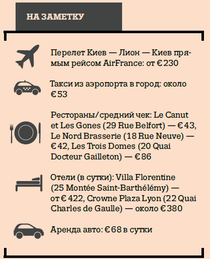Лион заслуженно пользуется славой одного из лучших гастрономических центров в мире — от обилия ресторанов, бистро и брассери (в переводе с французского — пивоварня) глаза разбегутся даже у искушенного гурмана. Выбор огромный, но мест в заведениях мало, особенно во время фестиваля. Бронировать столики лучше онлайн, одновременно с номером в отеле. Обязателен к посещению обладатель трех звезд Michelin — Auberge du Pont de Collonges (40 Rue de la Plage) именитого шефа Поля Бокюза. Порция легендарного трюфельного супа, рецепт которого Бокюз создал специально для приема у французского президента в 1975‑м, обойдется в € 85. Стоит попробовать также гратен (блюдо, запеченное в духовке до хрустящей корочки) из мяса раков по рецепту не менее известного повара Фернана Пуана (€ 72), а также голубя (€ 62) или сибаса (€ 140) в слоеном тесте, говядину Россини под соусом перигё (€ 65). Ромовая баба по рецепту бабушки Бокюза станет отличным финалом трапезы.