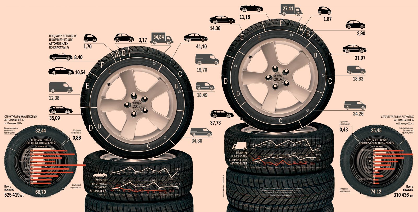 По итогам десяти месяцев 2014 г. рынок легковых автомобилей просел более чем вдвое относительно соответствующего периода минувшего года — до 79 тыс. Среднемесячный показатель продаж за этот период составил всего 8 тыс. легковушек. По словам Омельницкого, последний раз такие низкие ежемесячные результаты продаж можно было наблюдать в начале 2000‑х.