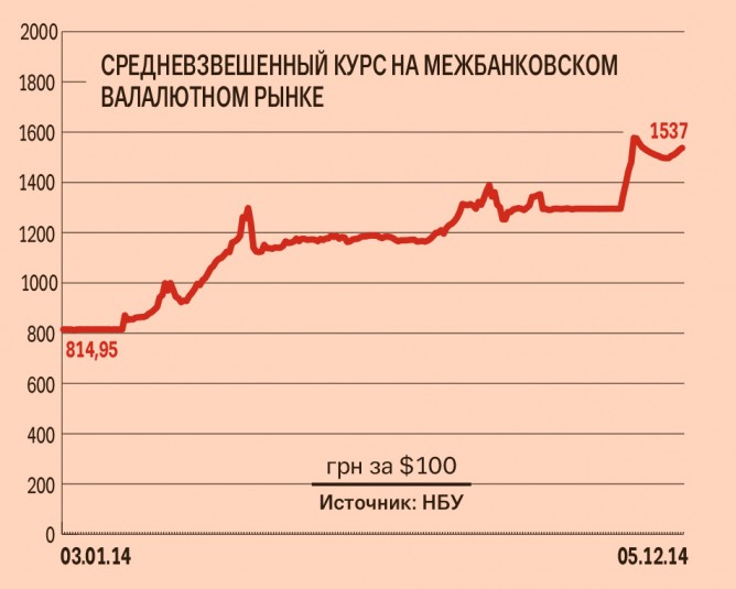 Вчера средневзвешенный курс доллара на межбанке составил 15,37 USD / UAH. Снижаться в цене гривня стала еще в конце прошлой недели — с 27 ноября. За неделю доллар на межбанке подорожал на 40 коп. Две недели до этого гривня укреплялась с 15,77 USD / UAH до 14,96 USD / UAH. Новый виток девальвации напугал население, которое уже вчера скупало валюту на черном рынке по 17 USD / UAH.