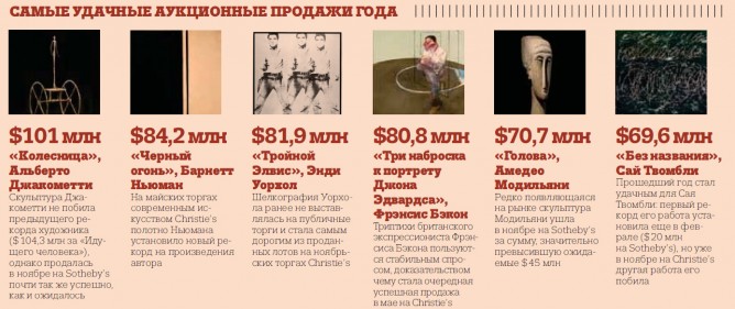Ведущие аукционные дома Sotheby’s и Christie’s называют осенний сезон, завершившийся в ноябре, «историческим»: таких кру-п-ных выручек у них не было за всю их историю. Впрочем, с таким же успехом «историческим» можно назвать весь текущий год. Ни одни крупные торги в 2014-м не обошлись без рекордов.