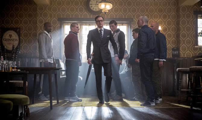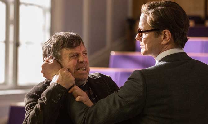 Дальше на экране начинается такое адское месиво, что голова кругом. Суперагентские шпионские штучки вроде отравленных авторучек, лезвий в ботинках и бронированных зонтиков, помощница главного злодея, у которой вместо ног — протезы со смертоносными лезвиями, сцена, в которой герой Ферта на протяжении 10 минут рвет, крушит и мелко шинкует целую толпу, после чего аккуратно поправляет галстук и оглядывается вокруг с легким недоумением — мол, что это было-то? Весь этот безудержный вихрь венчает самый настоящий салют из взрывающихся разноцветными фонтанами голов. При этом вся картина в целом не сваливается в китч — логика событий железная, а повествование катится плотно, не разваливаясь — как снежный ком.