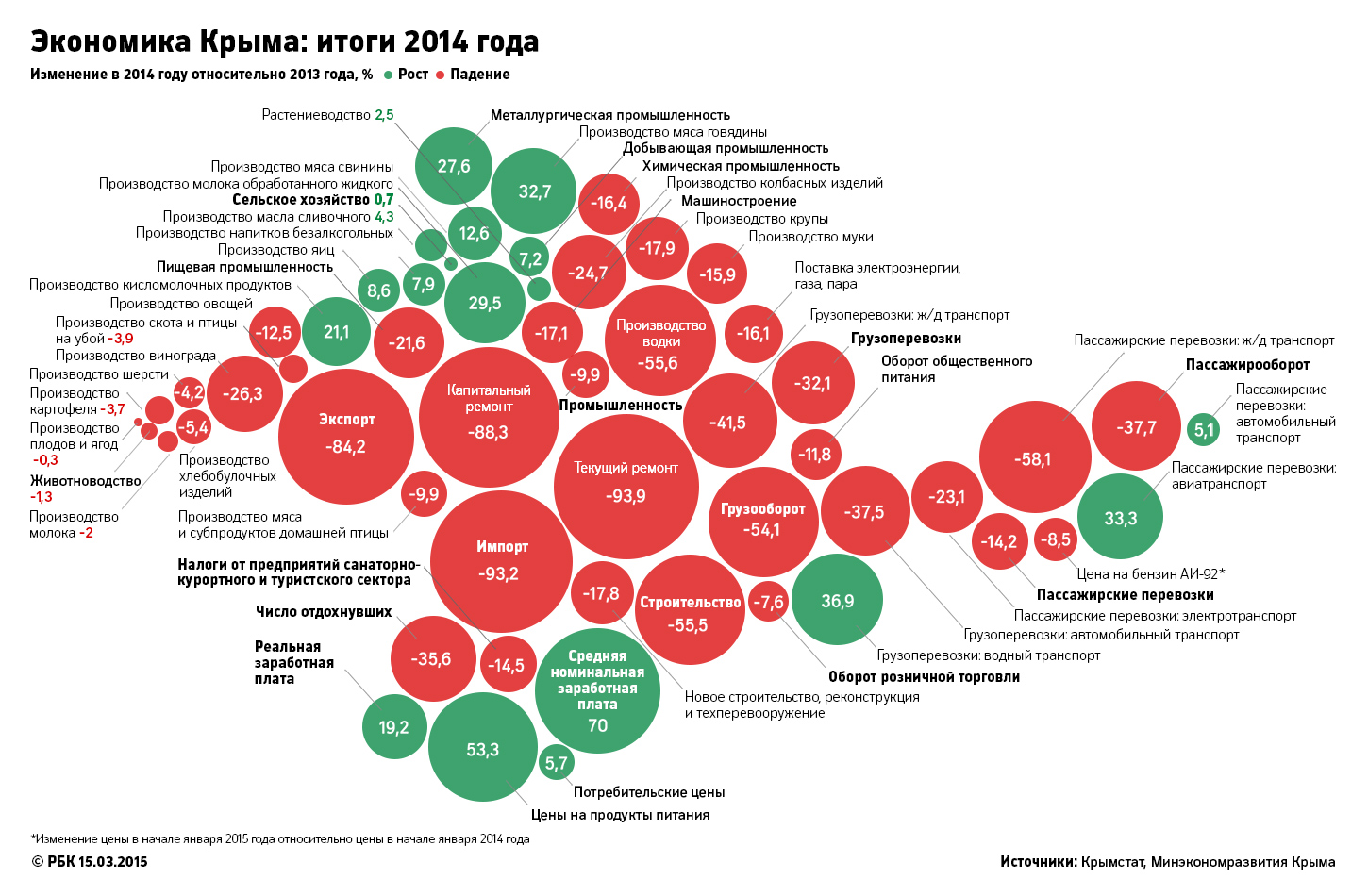 В апреле в ходе прямой линии президент Владимир Путин оценил расходы бюджета на развитие Крыма в 2014 году в 100 млрд руб. без учета инвестиций в инфраструктуру. С учетом расходов на интеграцию транспортной и энергетической инфраструктуры потребуется 130 млрд руб., подсчитывали в июне эксперты Центра макроэкономических исследований Сбербанка.