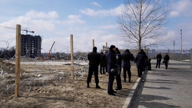 Тем временем, люди Максима Микитася вместо сломанного первого апреля забора оградили стройку колючей проволокой, что весьма красноречиво свидетельствует об отношении чиновника к жителям Киева. Кроме того, строителей, работающих на участке, начальство выгнало на импровизированный митинг в поддержку нелегальной стройки. Это выглядело уже откровенным фарсом.