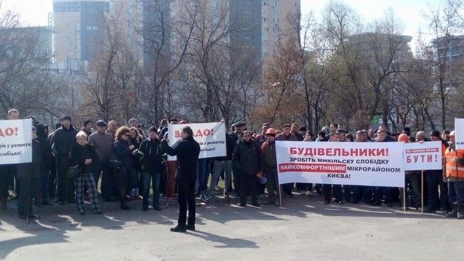 Застройщиком выступает компания «Укрбуд Девелопмент», которая является подрядчиком государственной корпорации «Укрбуд», возглавляемой Максимом Микитасем (сын одного из начальников строительства чернобыльского саркофага Виктора Микитася). Получается, что людей на левом берегу фактически избивали с санкции крупного госслужащего!
