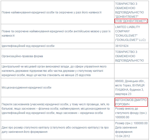 Компания «Содействие» принадлежит жительнице Донецка Татьяне Автономовой — матери донецкого бизнесмена Дмитрия Автономова. Согласно украинскому госреестру юрлиц, Автономову принадлежит и компания «Донуглемет», которая занимается трейдингом нефтепродуктов.