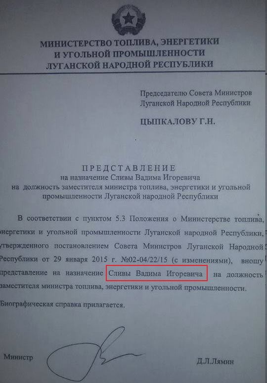 Заместителем министра энергетики ДНР стал Александр Потапенко, ранее возглавлявший компанию «Продакс» Сергея Кузяры. Одним словом, новое руководство энергетического сектора в ДНР стало гораздо более понятным украинской стороне. Примерно то же произошло и в ЛНР. В конце января на должность министра энергетики ЛНР был назначен Вадим Слива — бывший руководитель шахтоуправления «Луганское», входящего в государственное объединение «Луганскуголь».