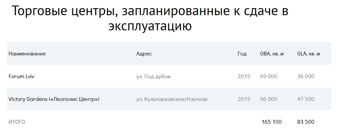 Еще один ожидаемый объект — ТРЦ Victory Gardens (ранее известный как Leopolis), но информации о дате его открытия пока нет. По одним данным, его откроют в конце 2015 года, по другим — в первом полугодии 2016 года, третьи вообще не рискуют назвать определенную дату, ведь его строительство останавливалось и переносилось. Впрочем, в отделе аренды ТРЦ уверяют, что в конце текущего года откроются обязательно — набор арендаторов у них, дескать, идет полным ходом. С турецким девелопером проекта Yeditepe Construction связаться не удалось.