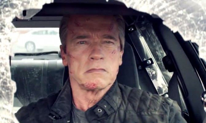 Последние месяцы бывший губернатор Калифорнии, который ведет активную жизнь в социальных сетях, всячески хохмил на тему нового фильма и интриговал публику в Facebook. В частности — иронизировал по поводу нового витка в своей карьере («теперь я снимаюсь в ремейках ремейков») и вывешивал ролики про «взорви это все!». В «Терминатор: Генезис» все примерно так же — Арни шутит, а все вокруг взрывается и горит синим пламенем.