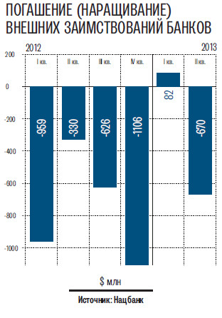 В июле банковские учреждения вернули иностранным инвесторам на $ 121 млн кредитов и других заимствований больше, чем привлекли, сообщает НБУ. За семь месяцев 2013 г. чистое погашение внешних займов составило $ 709 млн.