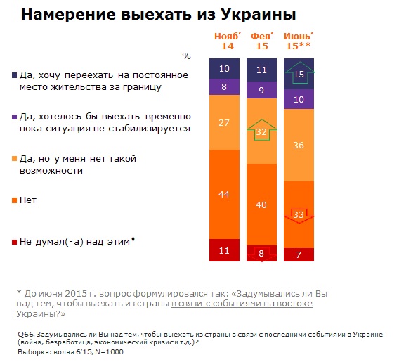Согласно данным исследования TNS On-line TRACK, в июне, по сравнению с показателями февраля 2015 г., значимо возросла доля тех, кто хочет переехать за границу на постоянное место жительства, и снизилась доля тех, кто не желает выезжать из Украины.
