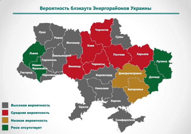 Нехватка энергоносителей приведет сначала к увеличению перетоков э/э из России, Молдовы и Белоруссии (аналогичные контракты об аварийной взаимопомощи НЭК «Укрэнерго» планирует подписать еще с Венгрией, Словакией и Румынией), потом усугубится ограничением мощности, веерными отключениями и снижением температуры теплоносителя в домах и, в конечном итоге, может привести к частичному или полному распаду энергосистемы Украины. Причем произойдет это в течение 10 секунд. Восстановление системы в зимний период может занять от 7 дней до одного месяца.