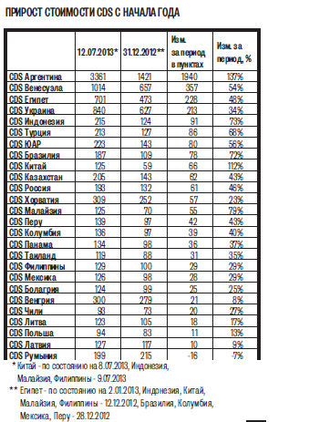 У всех пяти стран в последние два месяца одновременно существенно выросла стоимость CDS из-за опасений среди инвесторов о возможном сокращении программы количественного смягчения QE3 в США и ее сворачивании к концу года.