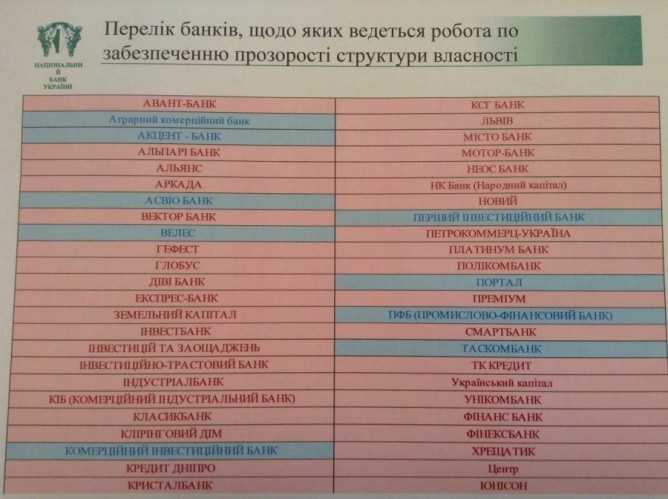 Некоторые банки уже дошли до этапа проверки достаточности у акционеров своего имущества. «Платинум Банк подал информацию о структуре собственности в НБУ в сроки, установленные законодательством, в том числе и о ключевых учасниках. Мы находимся в процессе работы с НБУ по уточнению вопроса раскрытия собственниками имущественного состояния», — пояснила директор департамента финансов и контроллинга Платинум Банка Мария Свешникова.