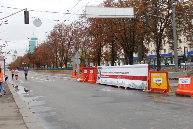 Разумеется, переносная конструкция для мест дорожных работ со слоганом мэрской кампании «Реальными делами меняем наш город!» вызывает легкую иронию, но, тут как раз случай «кашу маслом не испортишь».