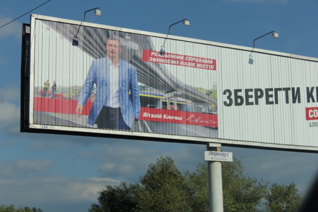 Однако, «агитационно-пропагандистский» административный ресурс, в целом, вполне органично вплетен в наружную рекламную кампанию Виталия Кличко: здесь и забота КГГА о киевлянах — покупателях квартир, и открытие городской властью кинотеатра, и т.д., и т.п.