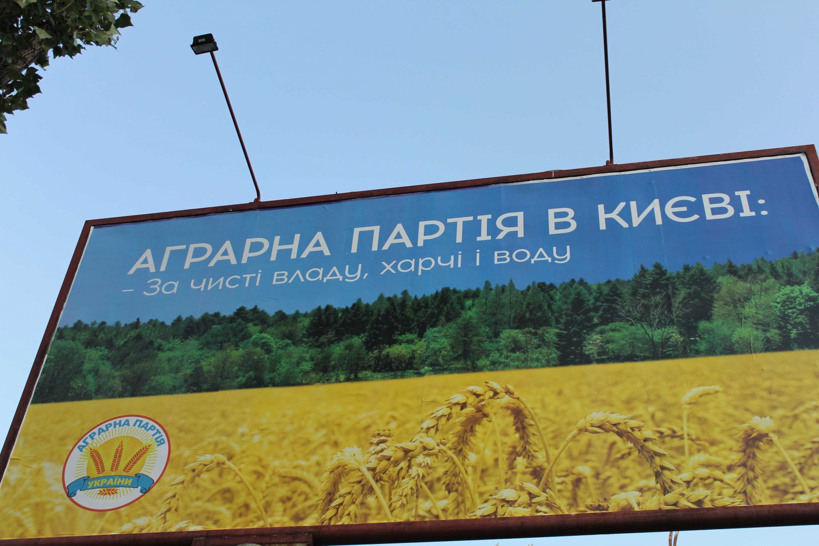 И — напоследок прямо противоположный пример: очень известное и достаточно позитивно воспринимаемое название партии, вполне уместные лозунги, привязывающие общенациональную политическую силу к локальной столичной избирательной кампании. Но, одновременно, полная смысловая неуместность Аграрной партии в столичном мегаполисе — на уровне раввина стоящего на молебне в Печерской Лавре.