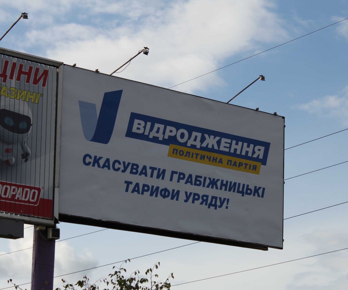 Оставляя этот тезис на уровне экспертного мнения, хочется отметить другой момент, а именно — излишняя «правильность» наружной рекламы «Видродження»: к дизайнерскому исполнению очень сложно придраться, но, в тоже время, и глазу особо не за что «зацепиться». Если же серьезно, то объект политической рекламы должен быть, прежде всего — «просто» рекламным объектом (и только потом — объектом политической рекламы), а этому критерию «наружка» «Видродження» не вполне соответствует.