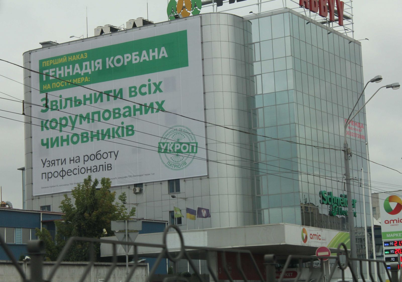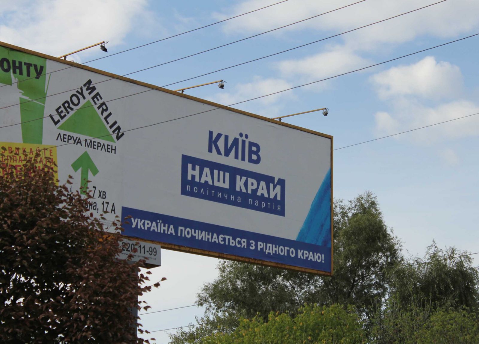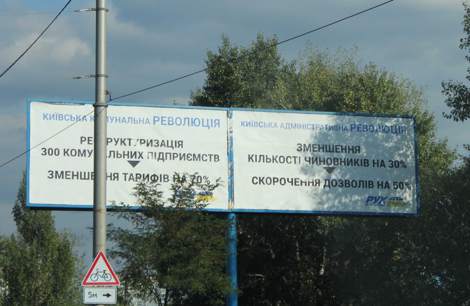 Посторонний наблюдатель, случайно попавший в сентябре — октябре на киевские улицы, без подсказки не сразу бы сообразил, какие выборы проводятся, т.к. львиная часть наружной политической рекламы была посвящена общенациональной тематике, не имеющей к местным выборам никакого отношения.