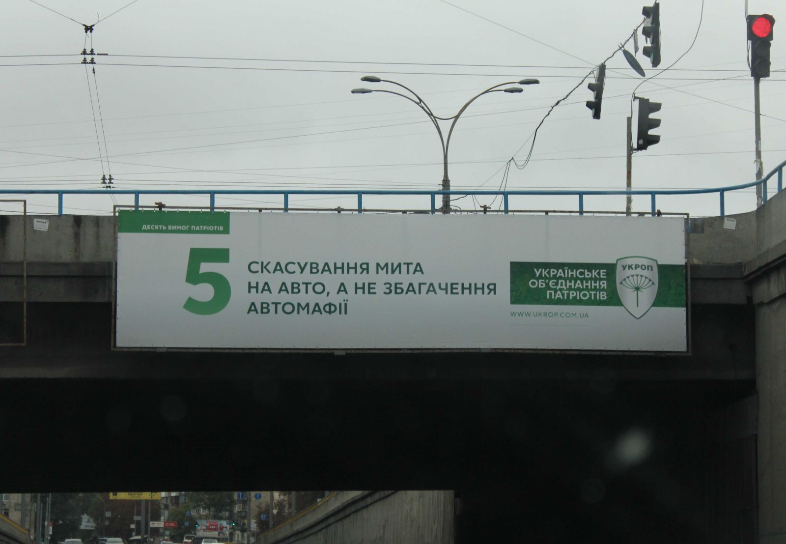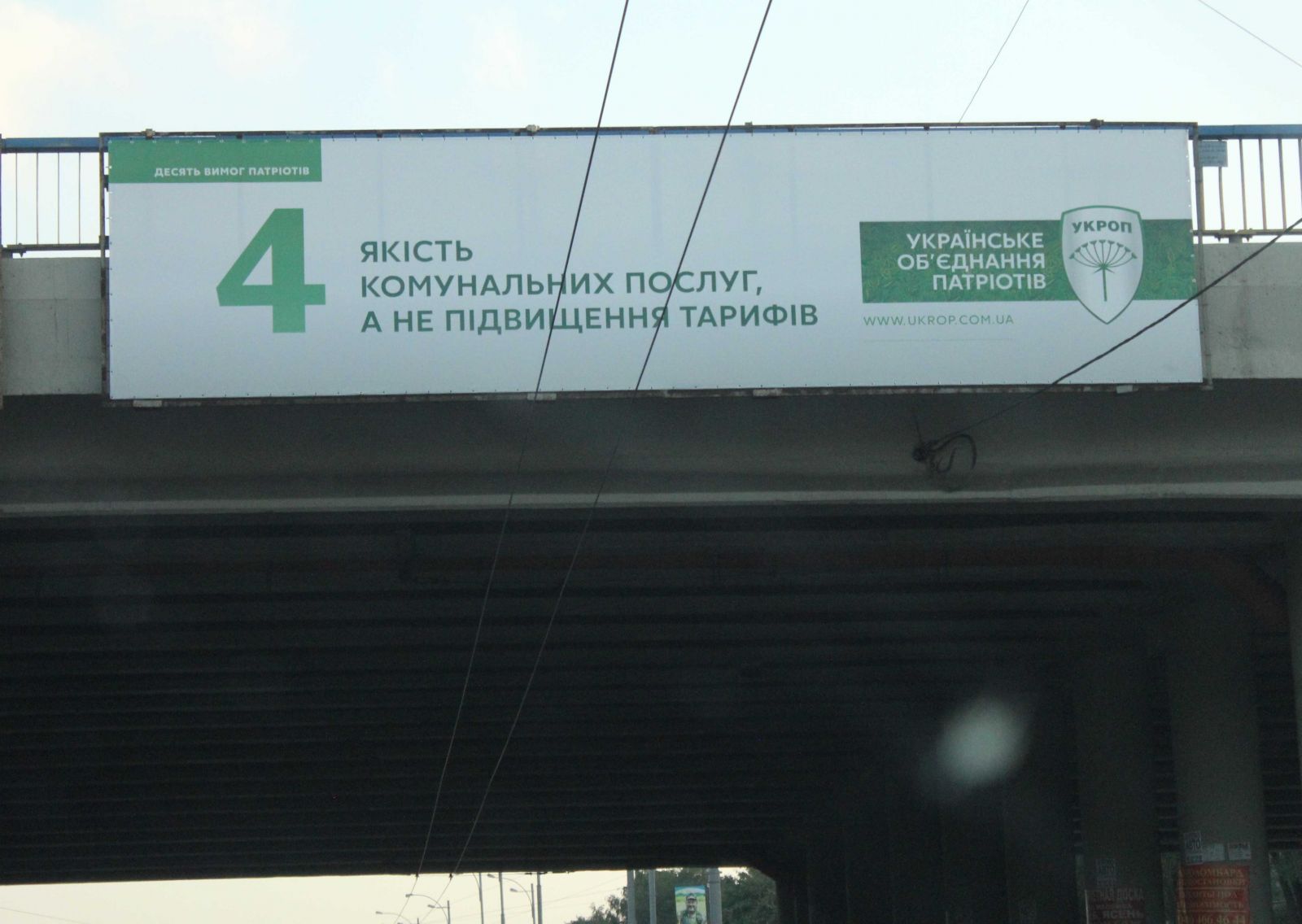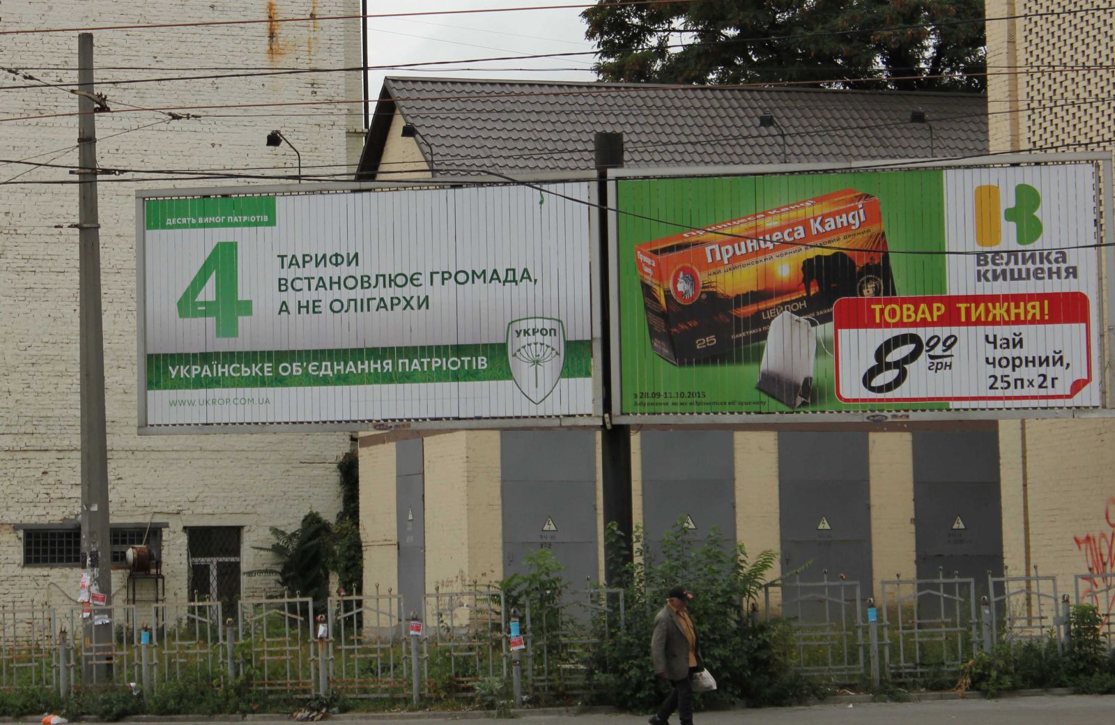Посторонний наблюдатель, случайно попавший в сентябре — октябре на киевские улицы, без подсказки не сразу бы сообразил, какие выборы проводятся, т.к. львиная часть наружной политической рекламы была посвящена общенациональной тематике, не имеющей к местным выборам никакого отношения.
