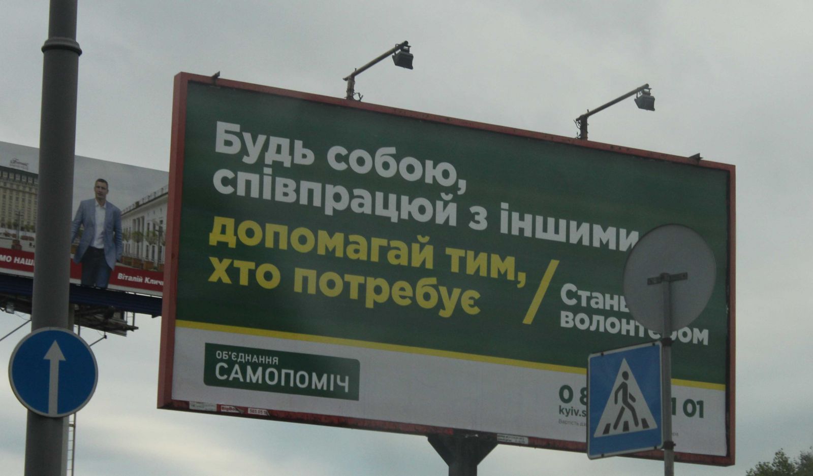 Партия «Самопомич», судя по всему, исходила из того странного убеждения, что ее программные цели хорошо известны киевским избирателям. В результате, кроме рекламы собственного названия, «Самопомич» запомнилась лишь «внутрикорпоративными» и «волонтерскими» кампаниями.