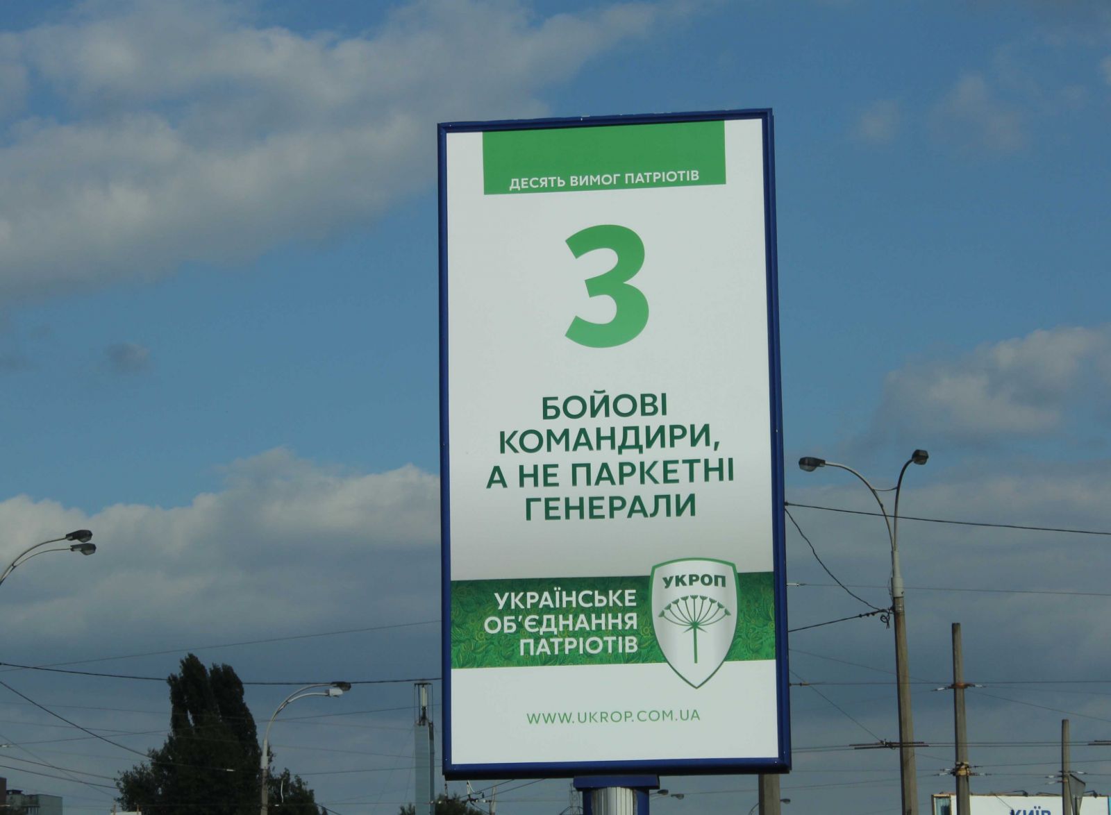 «Чемпионом» в этом отношении стала избирательная кампания партии УКРОП — все 10 «требований украинских патриотов» находятся вне компетенции местных (в данном случае — столичных) властей. При этом 30% требований относятся к сфере обороны.