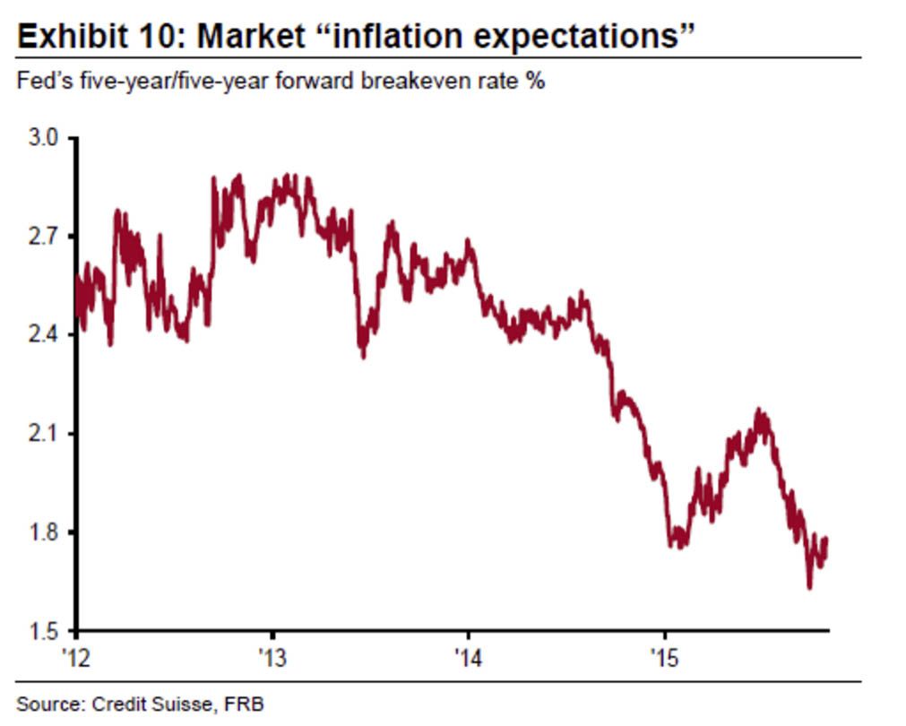 И, наконец, в 2016 году уменьшится значение дорогого доллара и дешевой нефти, двух значительных факторов, тормозящих сейчас инфляцию. Это все, по мнению Credit Suisse, обеспечит рост потребительской инфляции, что приведет к росту базовой инфляции.