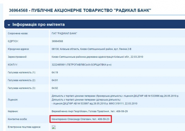 Люди с такими именами ранее работали в «Радикале», о чем можно узнать из сайтов по поиску работы и сайта банка. Кроме того, совладелицей «Инвестиционной компании «Экоресурс», которая также получила кредит в «Радикале», была бывшая акционерки банка Людмила Давидюк.