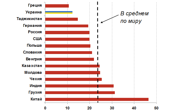 Однако Украина и накануне последнего экономического кризиса характеризовалась очень низким уровнем инвестиционной активности. В относительно благополучных 2011-2012 годах удельный вес инвестиций в ВВП составлял 18-19%.