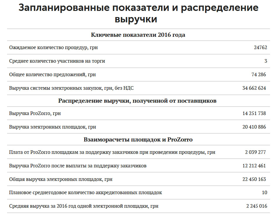 Участники заседания делают оговорку, что в документ еще могут быть внесены изменения, однако текст постановления дает четкое представление о масштабе бизнеса на системе электронных закупок. Оборот ГП «Зовнішторгвидав України», администратора ProZorro, составит почти 35 млн грн за 2016 год.