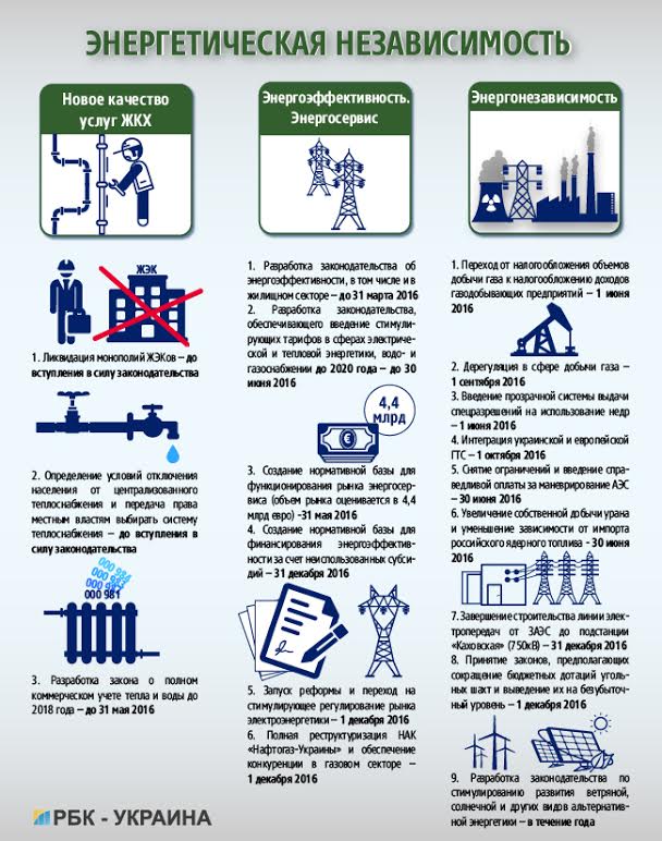 Энергетическая независимость — главная в повестке Кабмина и на этот год. Амбиции чиновников заключаются в формировании новых моделей энергорынков. Буквально к июлю страна может лишиться зависимости от импорта российского ядерного топлива, к октябрю — будет подготовлена к переходу на новые правила тарифообразования, а в декабре — завершится реструктуризация НАК «Нафтогаз-Украины». Такие сжатые сроки ставят под сомнение реальность заявленных планов.