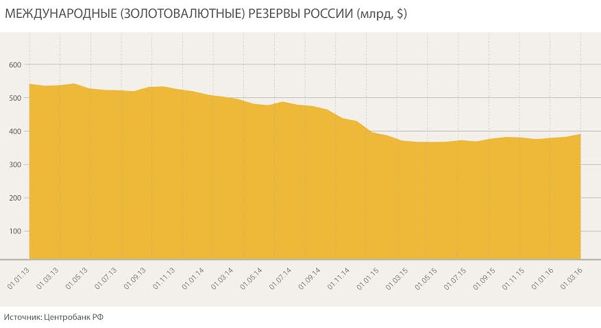 Кстати, это хорошо видно по динамике курса и рубля и золотовалютных резервов. Помните, украинские СМИ как-то посчитали, что Москве хватит резервов всего на полтора-два года, после чего в закромах будет ноль? Эти два года прошли, однако золотовалютные резервы России на начало марта 2016-го составили $380 млрд. Они не сокращаются с весны 2015 года.
