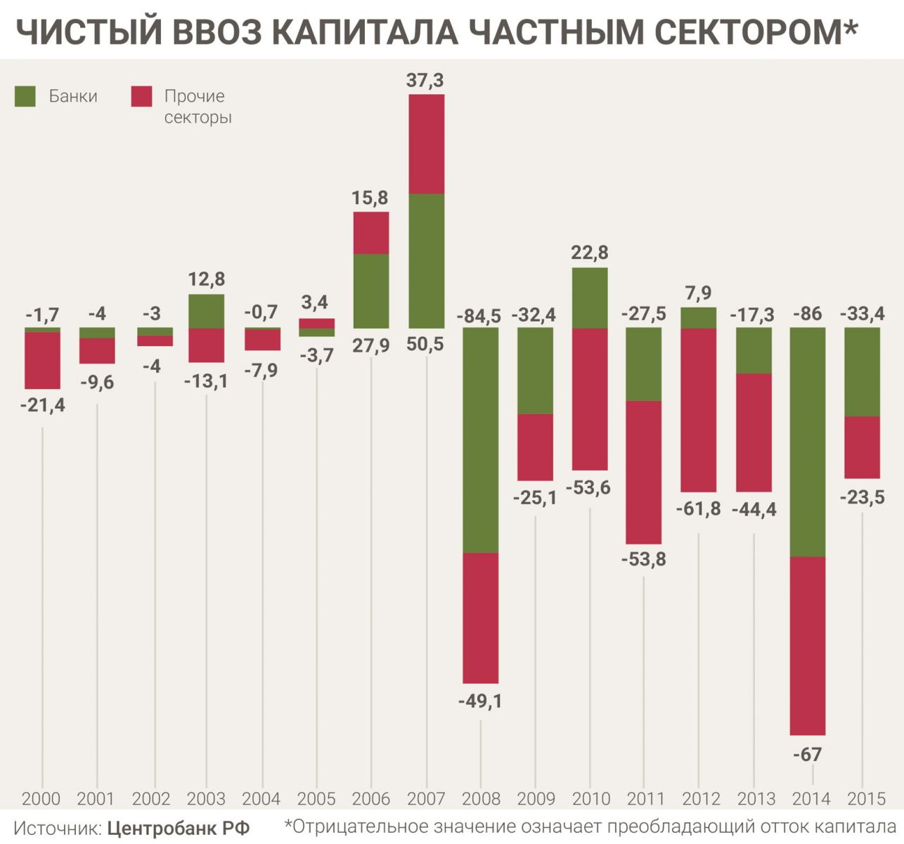 Почему российский рубль не будет далее девальвировать? Во-первых, иссяк ключевой фактор. В 2014–2015 годах из экономики РФ было изъято $210 млрд. Именно на эту сумму, по данным Центробанка, вывел свой капитал частный сектор. Как иностранцы, так и собственно российский бизнес, который по традиции проблемы решил пересиживать в офшорах. В последние два квартала отток минимален: все, кто хотели и могли, средства вывели.