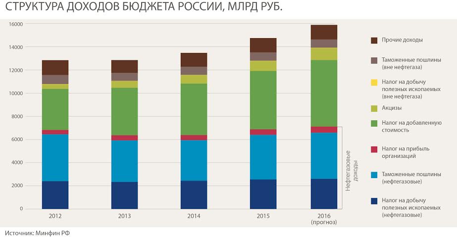 Экономический спад, санкции и увеличение военных расходов привели к формированию заметного бюджетного дефицита. Уже в 2015 году он составил 2,6% ВВП, тогда как ещё три года тому назад финансовая смета государства была сбалансирована. Ключевая причина — резкий рост расходов на силовые органы. Издержки на национальную оборону вышли на первое место среди всех расходов федерального бюджета: в 2016-м Минобороны получило право распоряжаться 19% госбюджета. Еще 13% получили в своё распоряжение другие силовики.