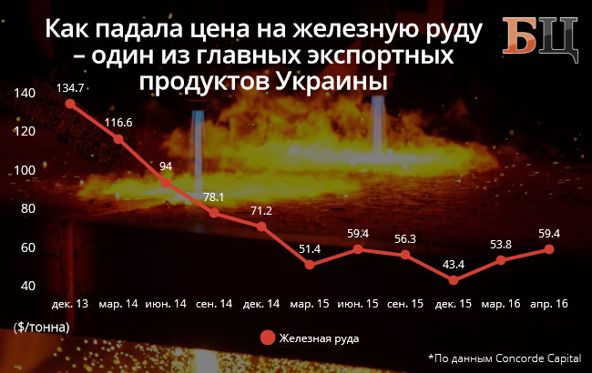 На середину апреля тонна железной руды в китайских портах стоила $59,4. Это на 37% выше по сравнению с концом 2015 года. При этом два года назад цена на руду была в два раза выше.