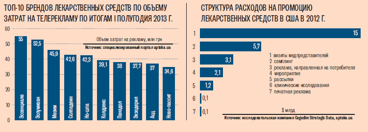 По данным специализированного портала аpteka.ua, по итогам І полугодия 2013 г. фармкомпании потратили на телевизионную рекламу 1,9 млрд грн.