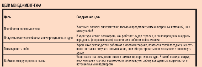 На данный момент в Украине работает не более трех‑четырех компаний, предлагающих отправиться в менеджмент-туры. Одни игроки специализируются на проведении таких поездок, другие позиционируют их как дополнительное направление. При этом в одной из туристических компаний, декларирующих возможность отправиться в различные менеджмент-туры, в частности по банкам Швейцарии, «Капиталу» ответили, что еще ни разу никуда никого не отправили.