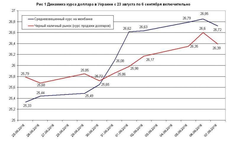 Черный рынок тренд поддерживал, но очень вяло. В среду 7 сентября межбанк выдал средневзвешенный курс 26,72, а черный наличный рынок упал до 26,39, т.е. тренд к падению гривны был переломлен. Дополнительно следует обратить внимание и на итоги аукциона НБУ по продаже долларов, на котором 7 ноября было выставлено около $30 млн., а банки захотели купить только $6,2 млн при спросе в $14,1 млн. Т.е. доллары по курсу выше 26-27 грн брали очень неохотно.
