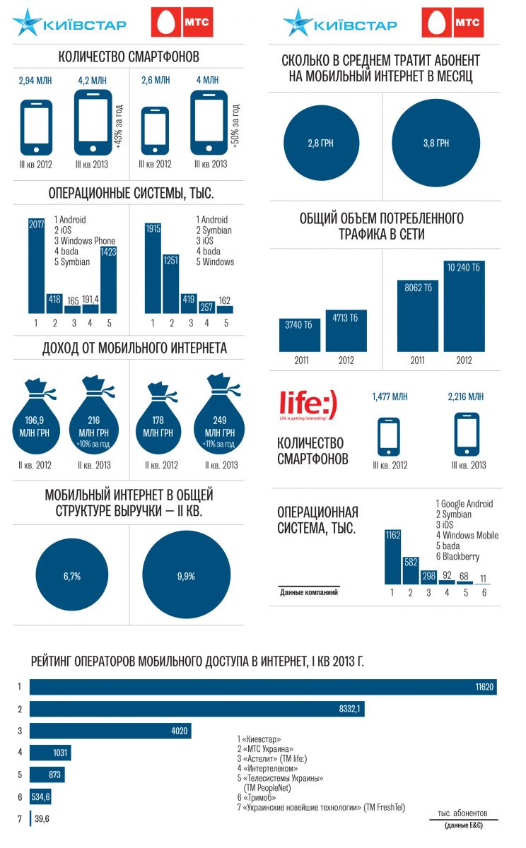 по отношению к прошлому году). При этом объем использованного трафика по итогам 2012 г. у МТС был вдвое больше, чем у «Киевстара» — 10 петабайт (10 тыс. Тб).