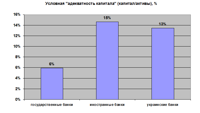 Как видим, иностранные и украинские банки находятся примерно на одном уровне, а вот государственные — качественно просели. Если их активы взвесить на уровень рисков, картина будет совсем грустная...