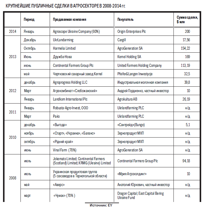 Один из локомотивов отечественной экономики — агропромышленный комплекс — переживает не лучшие времена. Девальвация нацвалюты, новый геополитический расклад, потеря части территории. Все это не могло не отразиться на финансовом здоровье агропредприятий. По словам аналитика инвесткомпании Eavex Capital Ивана Дзвинки, на фоне этих факторов публичные агрокомпании подешевели на 14‑90 %. «Агробизнес сегодня переживает серьезный конъюнктурный спад — мы зависим от внешних рынков, а 46 % падения цен на зерно, мягко говоря, hard style», — говорит финансовый директор Группы компаний «Мрия» Александр Чернявский.