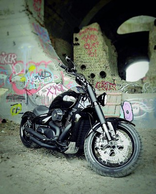 В качестве донора для этого кастома выступил новый Suzuki М109R стоимостью около $20 000. В нем переделана вилка, перекрашен мотор, поставлено заднее колесо шириной 300 миллиметров, новое заднее крыло, новое сиденье и тормозная система, фары и пневмоподвеска. На создание этого мотоцикла с учетом доставки запчастей ушло три месяца и $30 000