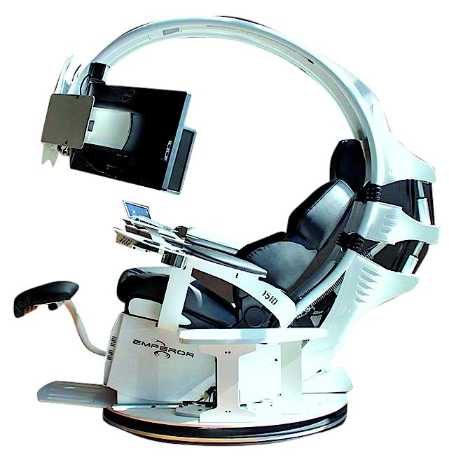 Высокая цена — не единственный недостаток Emperor 200: его рама сделана из алюминия, что по мнению разработчика, создает небольшие вибрации «хвоста» — вершины конструкции, к которой крепятся мониторы. Мартин уже исправил эти недостатки, сконструировав более тяжелую и менее дорогую версию — Emperor LX. Она укомплектована тремя 27- и двумя 19‑дюймовыми мониторами, сиденьем с подушкой для разгрузки бедер, аудиосистемой Bose и системой освещения. Новая конструкция полностью выполнена из стали и вместе с вращающимся пьедесталом весит под 200 кг и стоит $ 21 500. Обе версии самого удобного рабочего места доступны на сайте компании-разработчика — mwelab.com.