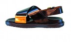 Модный почерк Marni — это цветочные мотивы и геометрические узоры, принты с фирменными кругами, полосами и абстрактными фигурами, аппликации и вышивки на качественных натуральных тканях, часто цитирующие силуэты 70‑х годов прошлого века. Свободный крой, струящиеся брюки, обувь на платформе и платья с запахом — все это интерпретируется из сезона в сезон, но никогда не отдает «фольклорщиной» или чрезмерно выраженным ретро. «Marni — это возможность выбора, а не диктатура модных тенденций», — говорит Консуэло. Смешать этнику и спорт? Пожалуйста! Так и произошло в новой весенне-летней коллекции 2014, пропитанной флером Юго-восточной Азии. Юбки и платья из льна и хлопка, как однотонные черные, так и яркие, струящиеся по фигуре, со множеством завязок, но с непременным акцентом на талии, отлично сядут даже на нестандартную фигуру. Стоит обратить внимание на платье-миди из хлопка с контрастным цветочным принтом. Или на вариант в цвете глухой охры, который может стать отличным ансамблем на каждый день в паре с более ярким горчично-оранжевым кожаным жакетом из телячьей кожи без подкладки. Ансамбли-двойки с юбками смотрятся не менее женственно и кажутся не менее практичными. Шелковые блузы с мелким геометрическим принтом выглядят и вовсе невесомыми, если их надеть под зеленое кожаное пальто oversized из более грубой по сравнению с жакетом кожи теленка. Свитшот цвета яичного желтка в «шахматку» по‑весеннему «подзадорит» гардероб, так же, как и белая хлопковая удлиненная рубашка с фирменными принтами — разноцветными и разновеликими кругами. Трикотаж и футболки «звучат» свежо благодаря аксессуарам: тканевые куколки-вуду на толстом кожаном жгуте, украшенные стразами и бисером, колье из ярких зеленых крупных камней и пластика, ожерелья с крупными красными цветками, лепестки которых выполнены из кожи, пластика и золотистых пластин, крупные браслеты, серьги и броши. Что касается обуви, то особое внимание хочется обратить на черные босоножки на широком каблуке из грубоватой кожи, их более изящную серебристую версию и сандалии на плоской подошве, декорированные золотистой пряжкой. Сумки в меру лаконичны, поэтому выбрать между, например, однотонным вариантом цвета сушеной апельсиновой корки или версией цвета сухого дерева с контрастной по цвету геометрической кожаной перфорацией — задача не из легких.