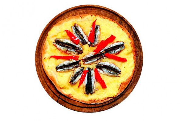 В кока-пицце с анчоусами тюлечка выкладывается на картофельное пюре поочередно с кусочками сладкого маринованного в «Арбекине» перца. Лепешка с бараниной при подаче поливается оливковым маслом. В кока-пицце со смешным названием «Фугазета» поверх лепешки выложен слой моццареллы, а на нем — маринованный лук с несколькими душистыми веточками орегано, зарумяненный в печи.