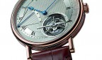 Внешность у этих часов достаточно обычная для Breguet, но пусть слово «Classique» в названии не вводит вас в заблуждение: новый калибр 581DR не имеет ничего общего с классическими механизмами. Сделанный с применением новых материалов и передовых технологий, он работает с частотой 28,8 тыс. полуколебаний в час, что является очень высоким показателем для моделей с турбийоном. Чем быстрее вращается колесо баланса, тем точнее часы, но и энергии такой механизм требует гораздо больше. Вопрос энергообеспечения часов был решен с помощью нового барабана, благодаря которому механизм способен проработать 90 часов без остановки.