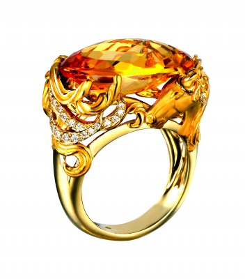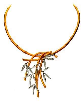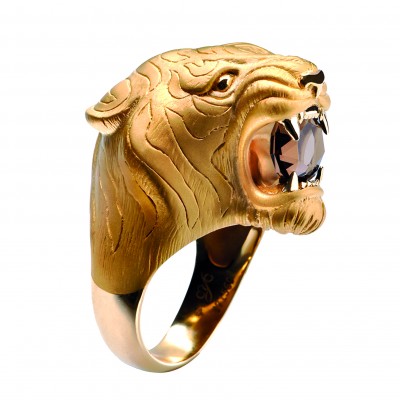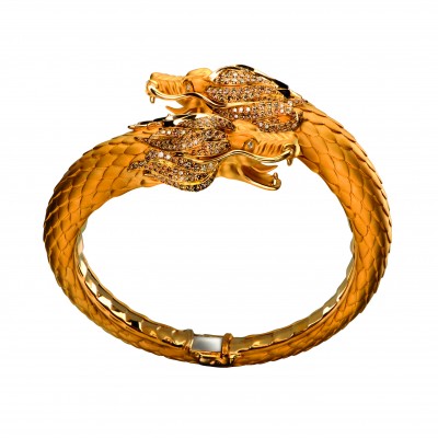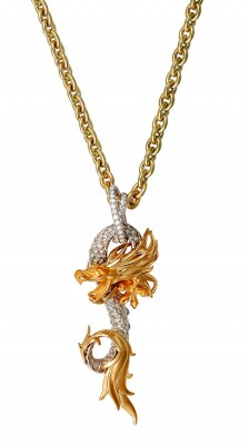 Еще одна тема коллекций Carrera y Carrera — мир флоры и фауны. Коллекция Bestiario, пожалуй, самая агрессивная из всех: кольца в виде головы рычащего тигра из желтого или белого золота с дымчатым кварцем, браслет в виде обвивающей запястье змеи из желтого золота с рубинами, белыми и коричневыми бриллиантами, серебряные запонки в форме крокодильей головы… Разве что сонный слоник из желтого золота, лениво развалившийся прямо на аметисте, выпадает из ряда. В коллекции Círculos de Fuego анималистическая тематика смешивается с ориентальной. Дракон (символ власти) наиболее фактурно выглядит на подвесках Shangahai, особенно на черном и красном шелковых шнурах. Желтое и белое золото, изумруды, рубины, желтые и оранжевые сапфиры, черные и белые бриллианты — чего здесь только нет! Серьги Xian на фоне такого буйства самоцветов смотрятся почти аскетично: желтое золото, голубые топазы, оникс и бриллианты.