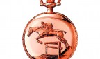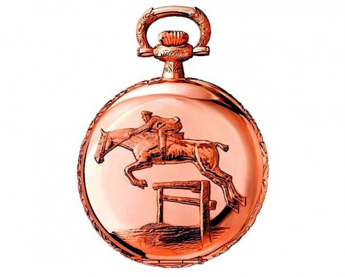 Мануфактура Longines уже много лет является партнером и хронометристом самых престижных соревнований по конному спорту. Поэтому и хронографы с изображением жокея на лошади в коллекции этой марки — не редкость. Первые часы с таким рисунком в 1878 году стали хитом среди жокеев и спортивных судей. Отмечая китайский Новый год и еще раз напоминая о своей любви к конному спорту, мануфактура выпустила ремейк карманных часов 1927 года. Крупный 49,5‑миллиметровый корпус из розового золота украшен изображением жокея на лошади. С инженерной точки зрения эта модель не является чем‑то революционным: механизм с балансовой частотой 21 600 пк / ч управляет работой всего трех стрелок — часовой, минутной и секундной.