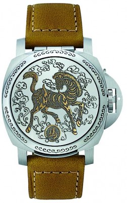Специализирующаяся на производстве хронографов для дайверов и подводников мануфактура Panerai решила изменить традиции и выпустить часы в корпусе, водонепроницаемость которого всего 50 метров. Этот недостаток мастера Panerai решили компенсировать наличием откидной стальной крышкой с изображением лошади. Символ 2014 года сделан вручную из золота.