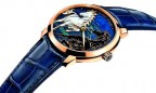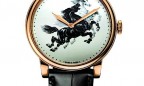 Мануфактура Jaquet Droz, основанная в 1738 году, прославилась часами, циферблаты которых украшены эмалевым покрытием. Но в этой модели мастера Jaquet Droz использовали сразу несколько декоративных техник: циферблат покрыт черной эмалью, выполненной в технике шамплеве, а фигурка мустанга выгравирована вручную из розового золота 916 пробы. На создание каждой фигурки у гравера уходит неделя работы. Модель укомплектована механизмом с ротором автоподзавода из белого золота с выгравированным изображением лошади и двойным барабаном. Часы выпущены тиражом 88 штук и доступны по цене $ 57 800.